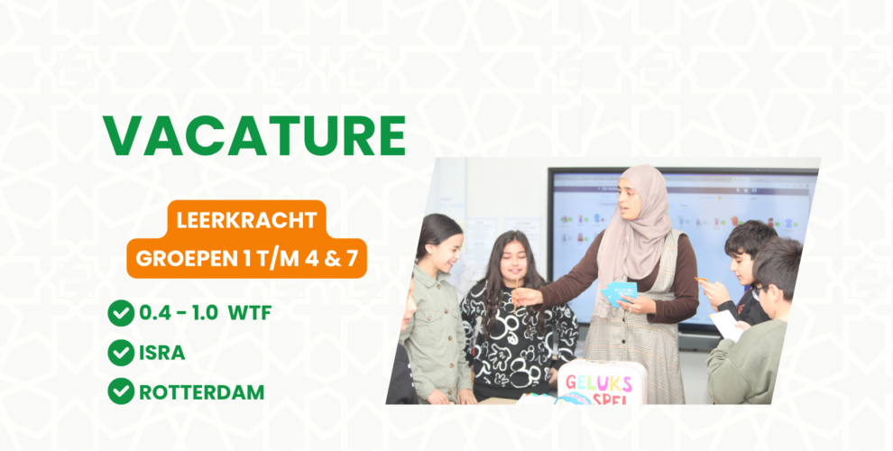 Voor onze school IBS Isra hebben we verschillende vacatures openstaan voor leerkrachten in de groepen 1 t/m 4 en groep 7. Wij zoeken enthousiaste, betrokken en creatieve onderwijsprofessionals die samen met ons een veilige, stimulerende en inspirerende leeromgeving willen bieden. Bij ons krijg je de ruimte om je eigen ideeën in te brengen, je talenten te ontwikkelen en bij te dragen aan de groei en ontwikkeling van onze leerlingen. Kom jij ons team versterken en bouwen aan een school waar kinderen én leerkrachten kunnen groeien?